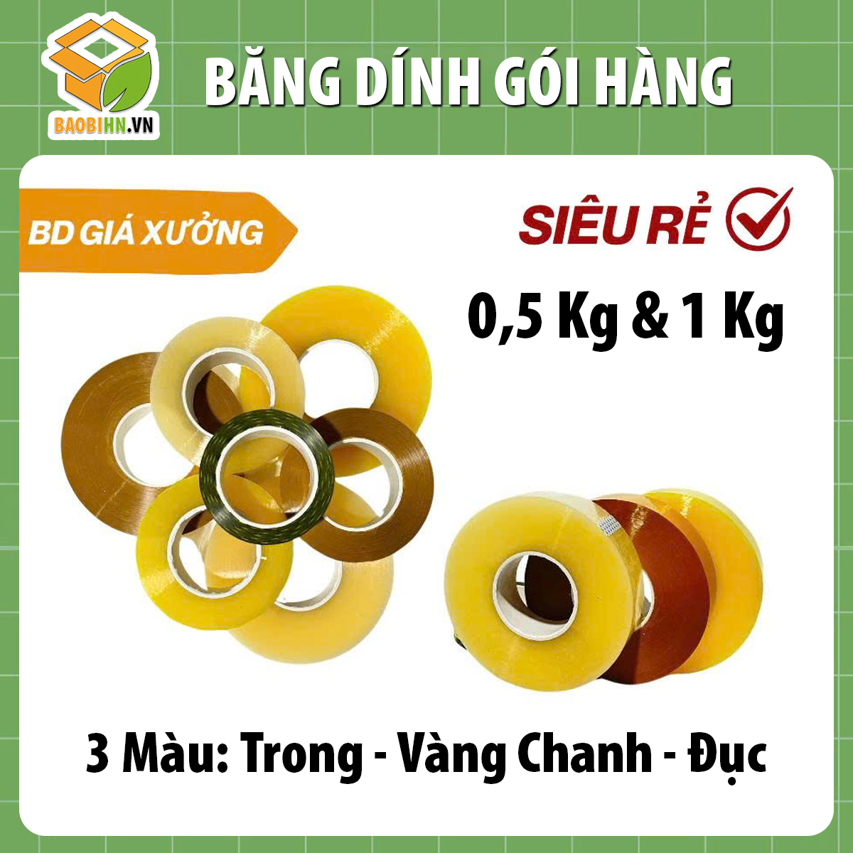1 Cuộn nặng 1 Kg, keo bám chắc, kéo mượt, không đứt giữa chừng, băng dính chuyên dụng không bong mép khi vận chuyển đường dài.
